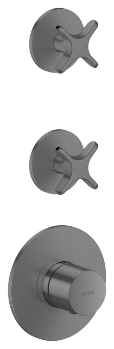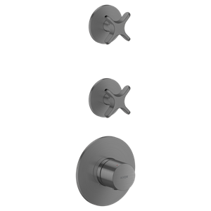 One Termostatmodul inbyggnad med 2 funktioner och krysshandtag Borstad Svartkrom