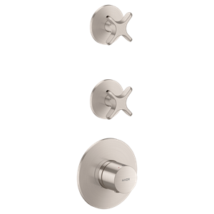 One Termostatmodul inbyggnad med 2 funktioner och krysshandtag Rostfri finish