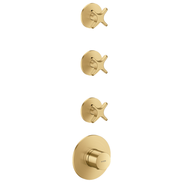 One Termostatmodul inbyggnad med 3 funktioner och krysshandtag Borstad Guld