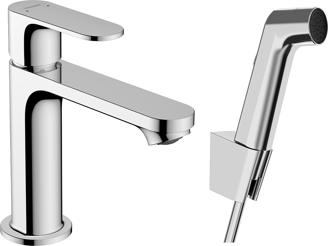 Rebris S tvättställsblandare 110 med bidettehanddusch och duschslang 160 cm utan