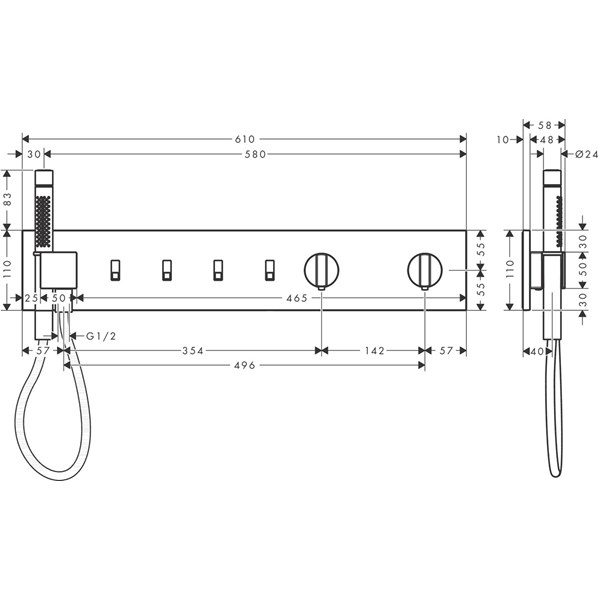 • består av: termostatmodul, duschhållare, pinnhanddusch, textilduschslang