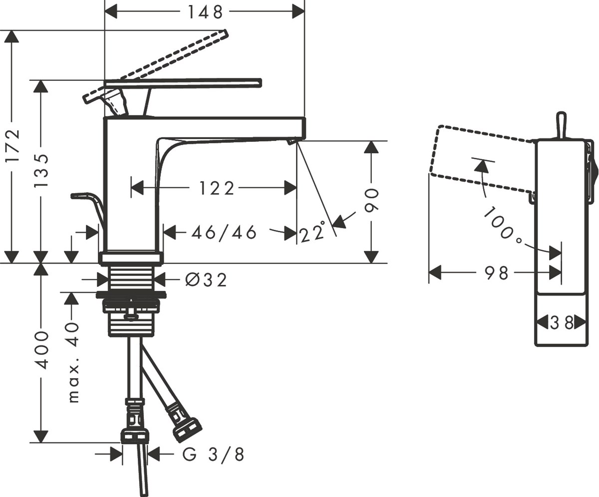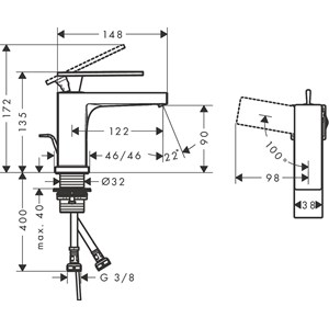 • består av: 1-grepps tvättställsblandare, bottenventil