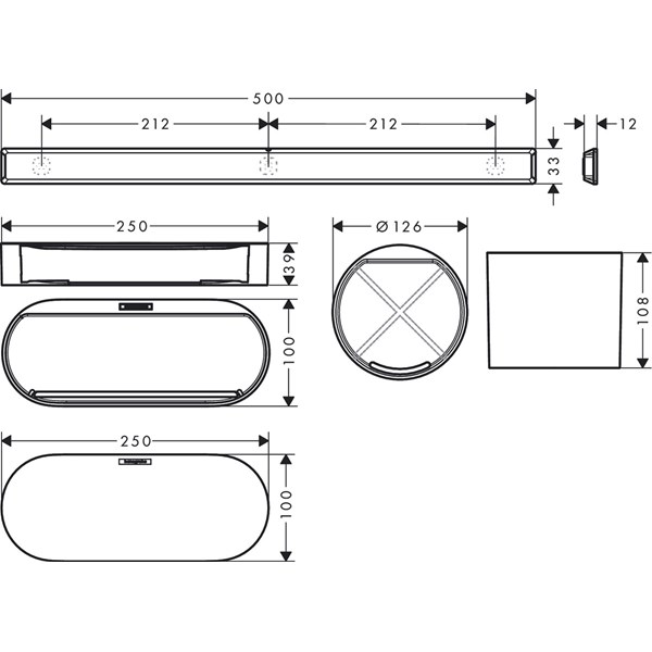 • tillbehör kan klickas fast på väggskenan