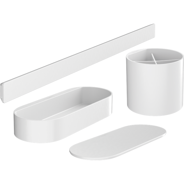 • består av: väggstång, förvaringskorg, lock, mugg