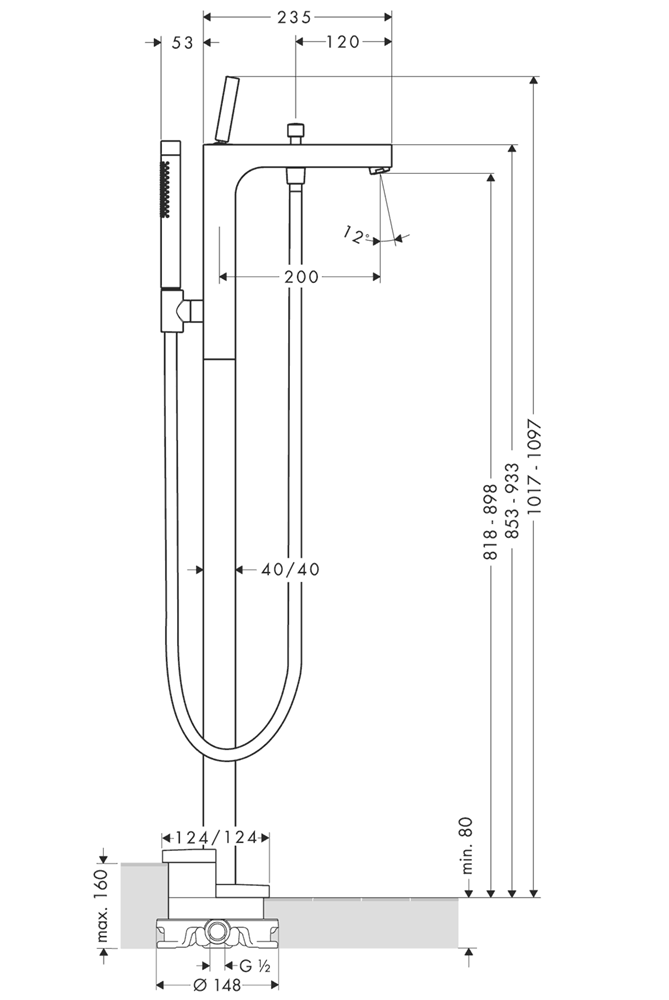 Citterio kar-/duschblandare golvmontering