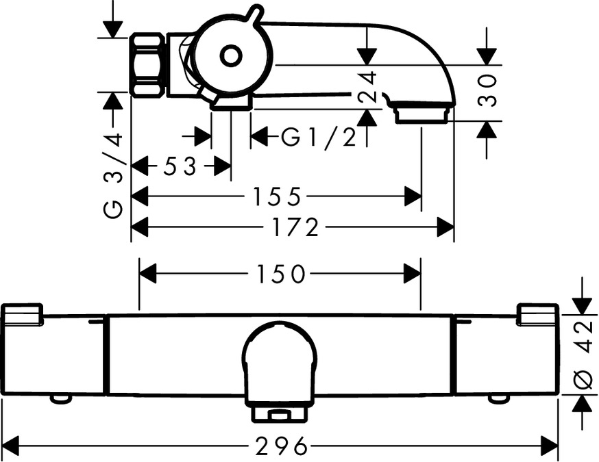 • flödesmängd för badkarspip vid 3 bar: 20 l/min