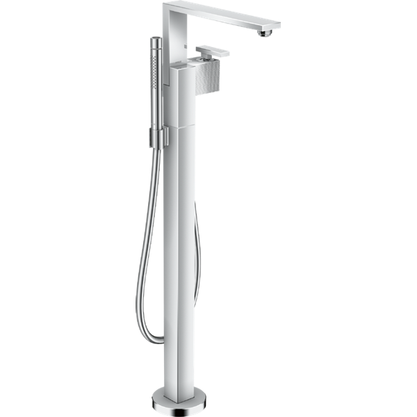• består av: 1-grepps badkarsblandare för golvmontering, pinnhanddusch, duschhållare, duschslang