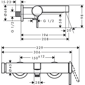 • flödesmängd för badkarspip vid 3 bar: 19 l/min