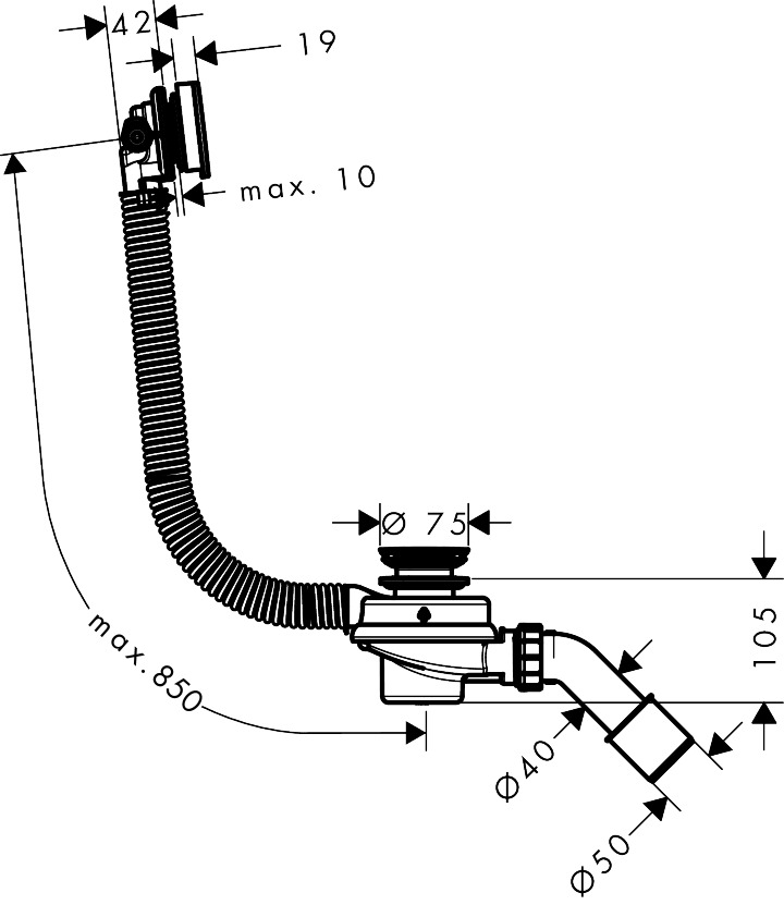 Flexaplus Komplett set med avlopp och bräddavlopp badkar Krom