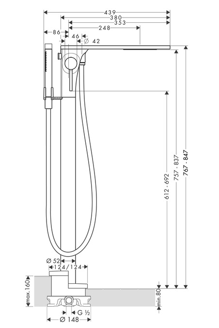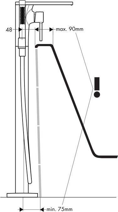 • består av: 1-grepps badkarsblandare för golvmontering, pinnhanddusch, duschslang, duschhållare
