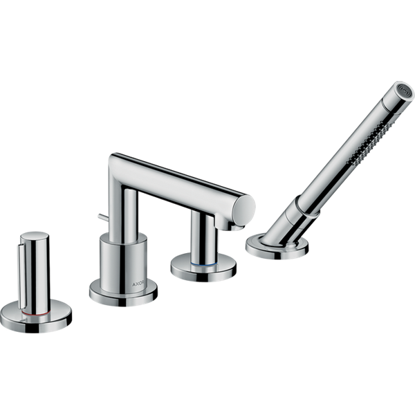 • består av: 4-håls badkarsblandare för karkant, pinnhanddusch, Secuflex slangset, duschhållare