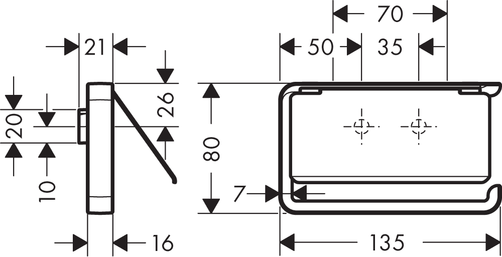 • kan kombineras med tvålkopp/hylla # 42803XXX och hylla 300mm # 42838XXX