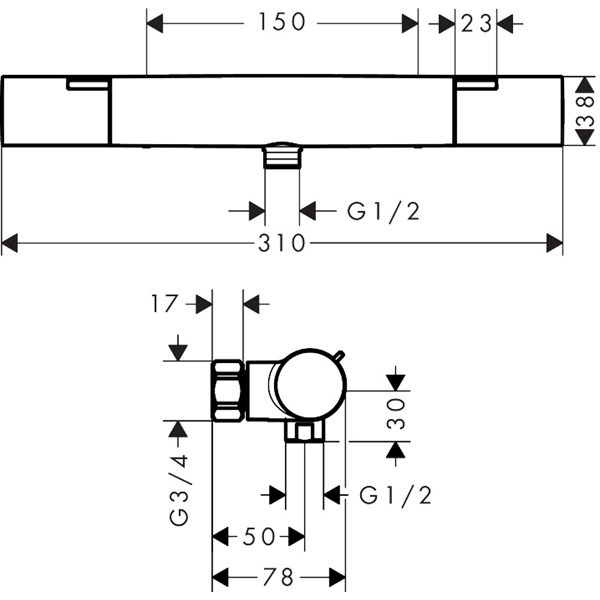 Ecostat Fine Duschtermostat 150cc utan väggkåpor Krom