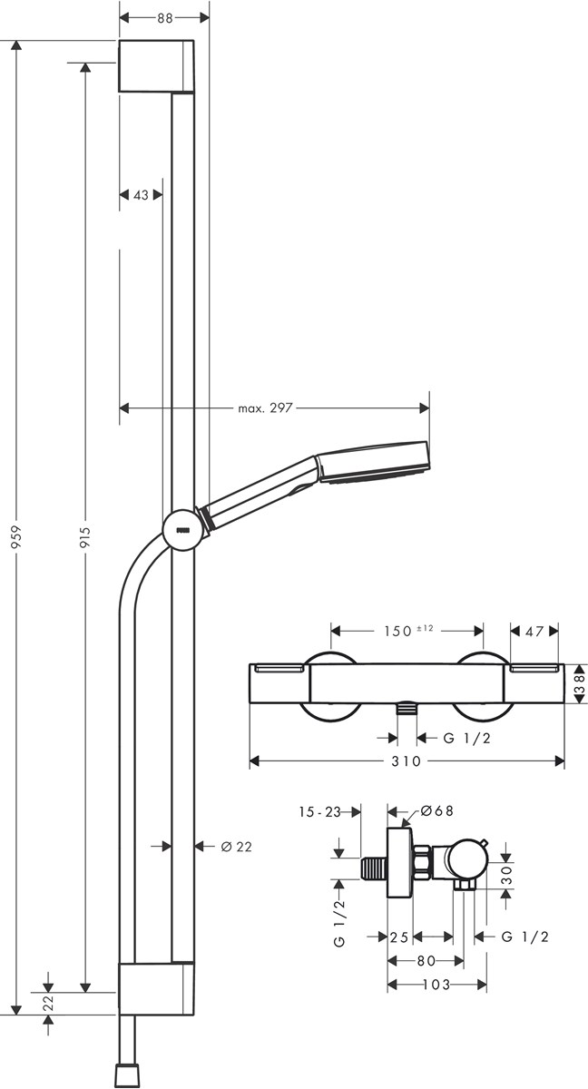 • duschstång diamter: 22 mm