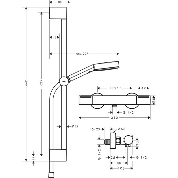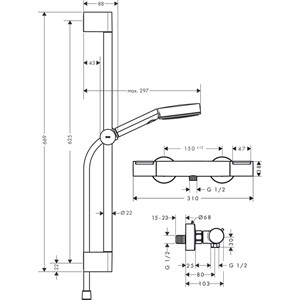 • består av: handdusch, duschtermostat, duschstång, glidfäste, duschslang