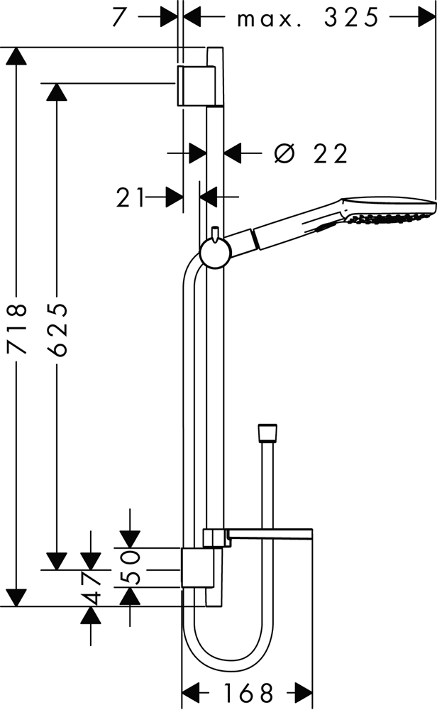 • består av: handdusch, duschstång, duschslang, glidfäste, tvålkopp