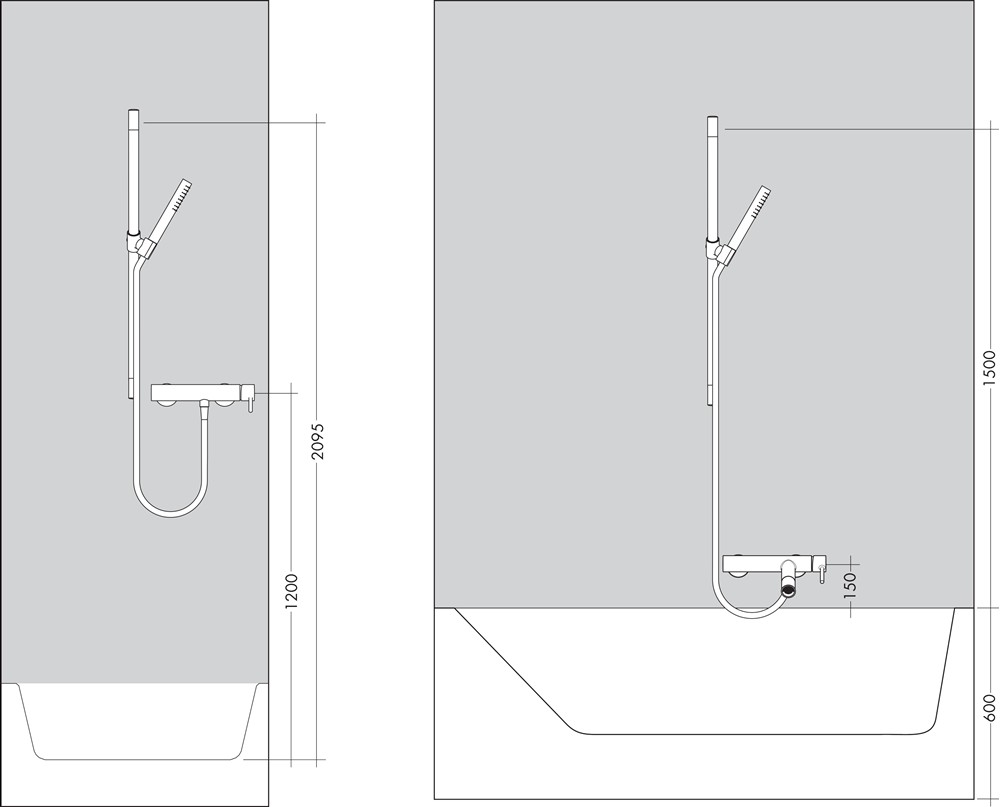 • består av: handdusch, duschstång, duschslang, glidfäste, väggstång 0,9 m, hållare för duschslang med konisk mutter