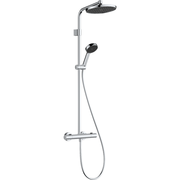 • består av: huvuddusch, handdusch, duschtermostat, duschstång, glidfäste, duschslang