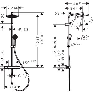 • duscharmslängd huvuddusch: 344 mm