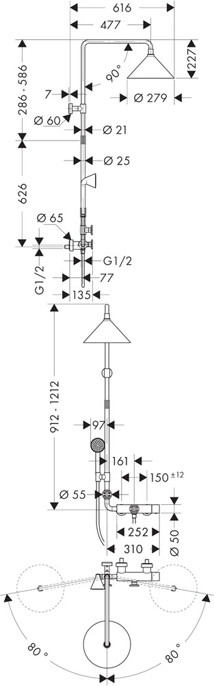 • duschhuvudsstorlek huvuddusch: 279 mm