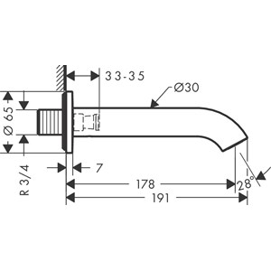Uno Utloppspip 178 mm till kar, rundad Borstad nickel