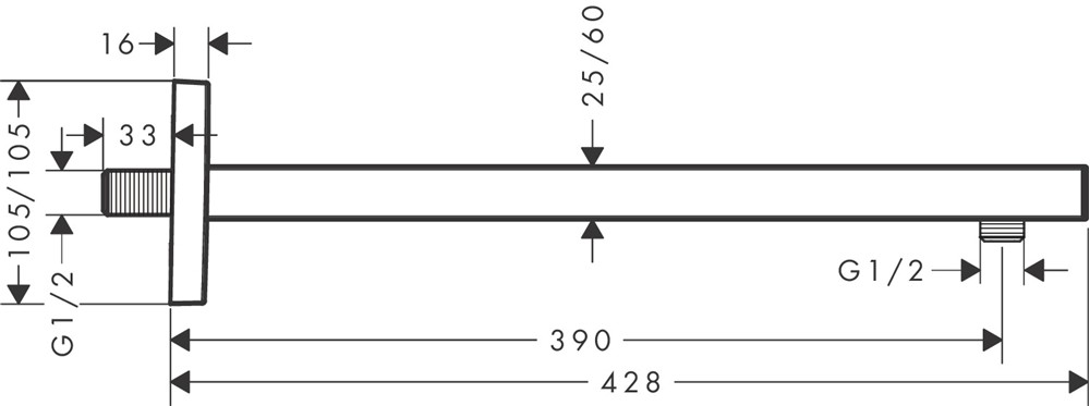 Duscharm väggmontage Square 38,9 cm 1/2" Borstad brons