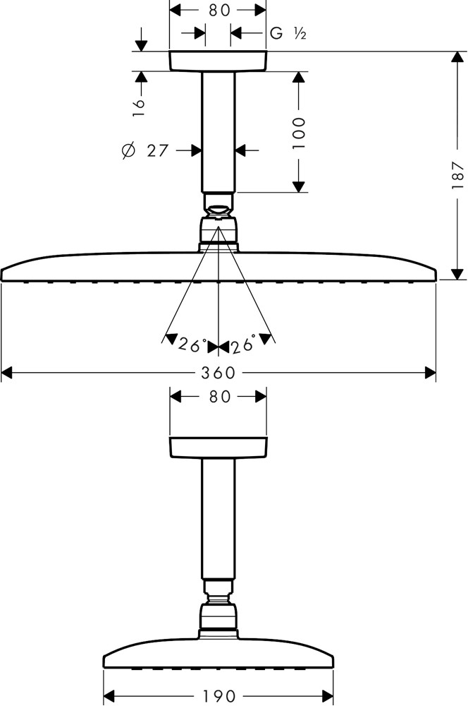 • duschhuvud storlek: 360 x 190 mm