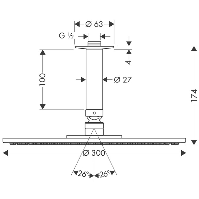 Raindance S Huvuddusch 300 1jet med duscharm takmontage 10 cm