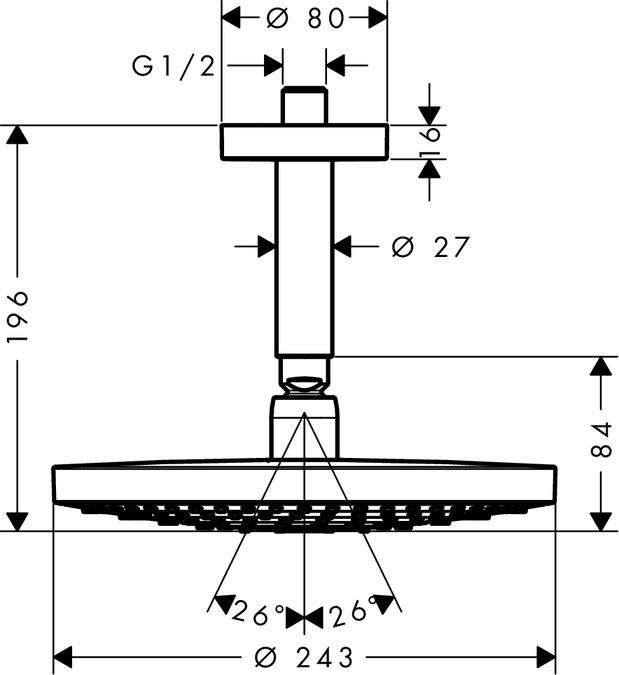 Raindance Select S Huvuddusch 240 2jet EcoSmart med duscharm takmontage 10 cm