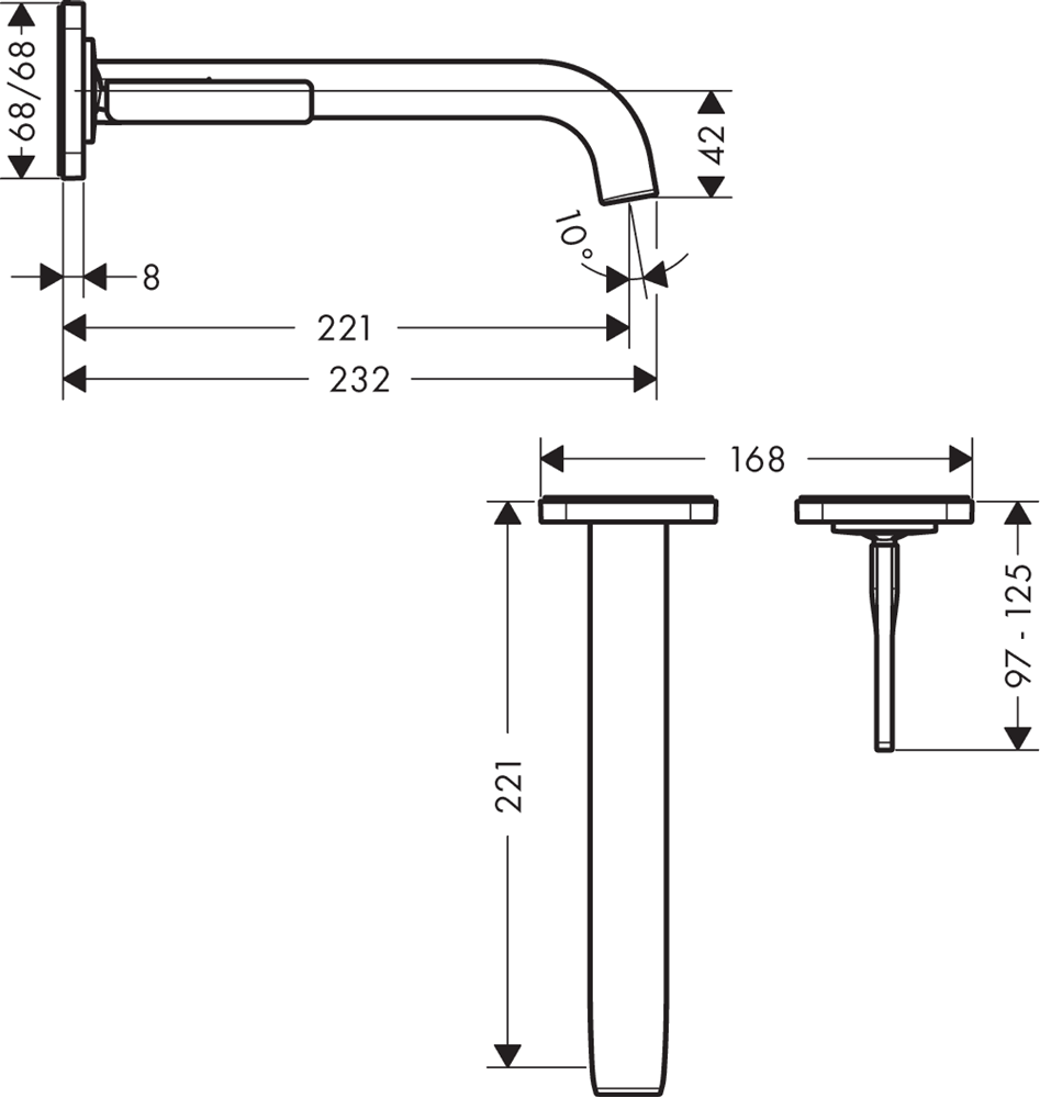 Citterio E tvättställsblandare 220mm inbyggnad vägg