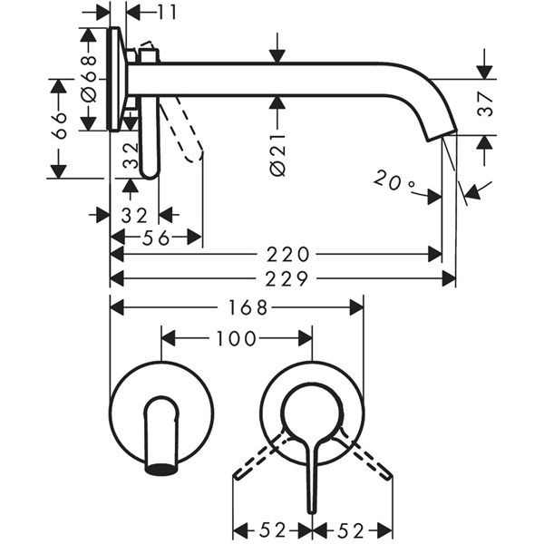 One tvättställsblandare inbyggnad vägg med 220 mm pip