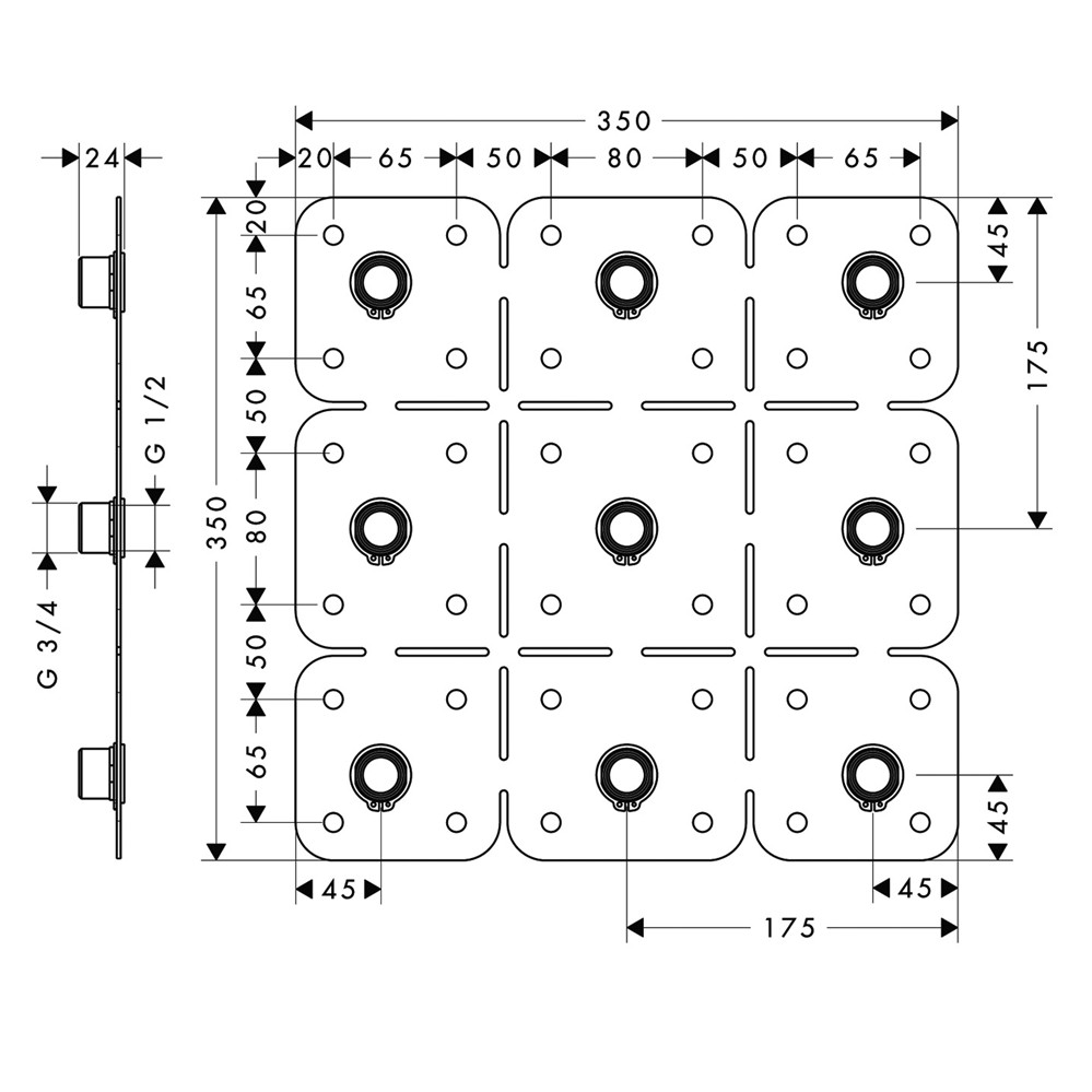 • monteringshjälp för montering som huvuddusch i multipel förening för montering med exakt mått