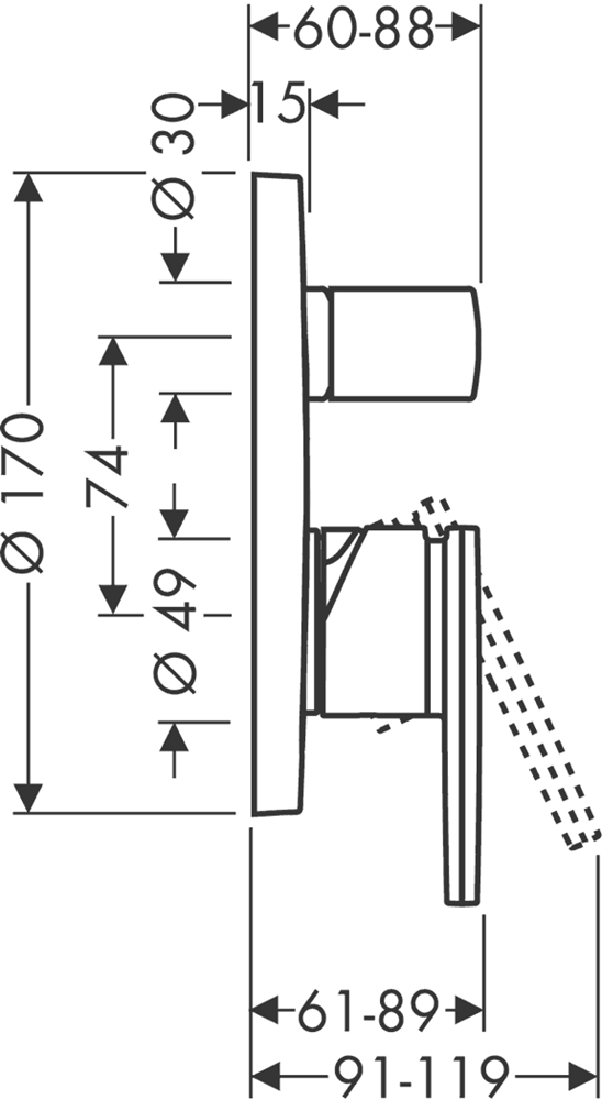 Citterio 1-greppsblandare 2 funktioner inbyggnad