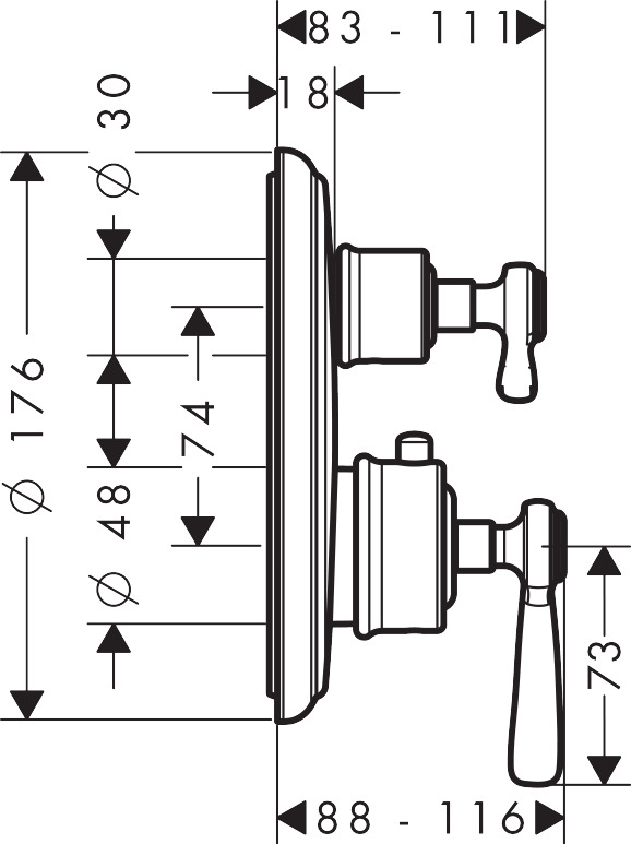 Montreux Termostat 2 funktioner inbyggnad Borstad mässing