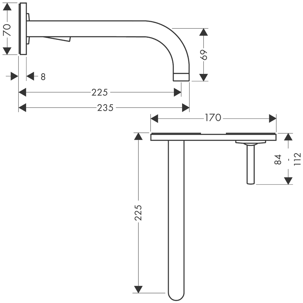 Uno tvättställsblandare 225mm inbyggnad vägg