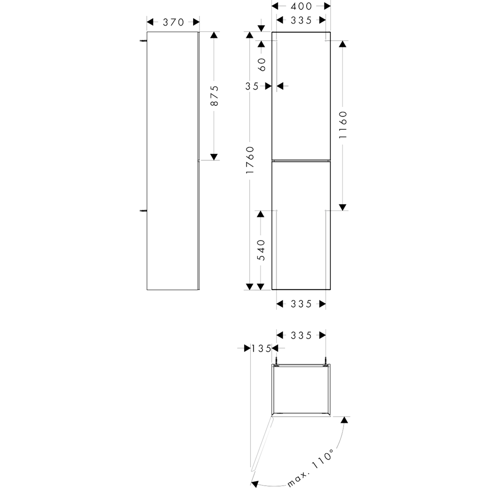 Xevolos E Högskåp matt vit 400/360, dörrgångjärn till vänster
