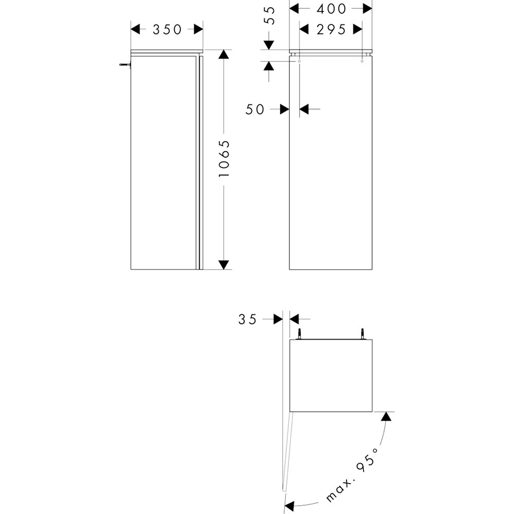 Xilesa E Medelhögt skåp 400/350, dörrgångjärn till vänster