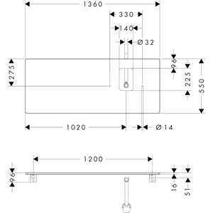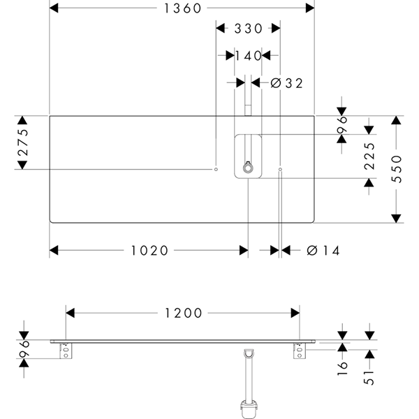 Xelu Q Bänkskiva 1360/550 med utskärning till höger tvättfat med blandarhål