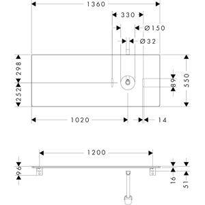 Xelu Q Bänkskiva 1360/550 med utskärning till höger tvättfat utan blandarhål