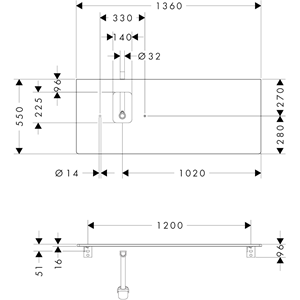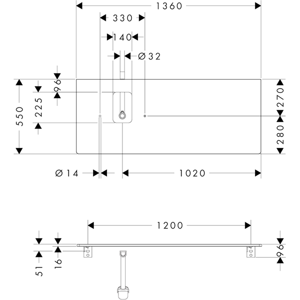 Xelu Q Bänkskiva 1360/550 med utskärning till vänster tvättfat utan blandarhål