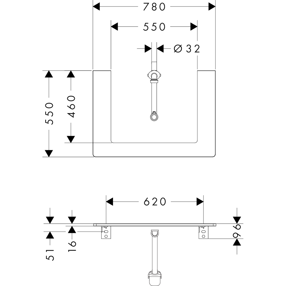 Xelu Q Bänkskiva 780/550 för bänkmonterat tvättställ center 600/480