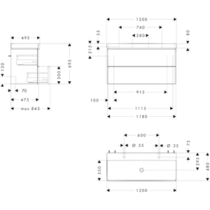 • platsbesparande vattenlås måste beställas separatKommod• antal lådor: 2 lådor