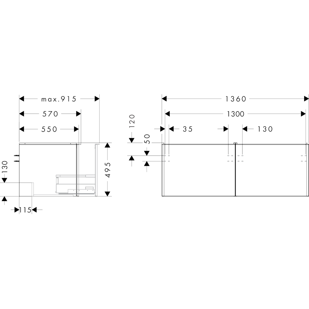 Xelu Q Kommod matt diamantgrå 1360/550 2 lådor för bänkskiva utskärning center