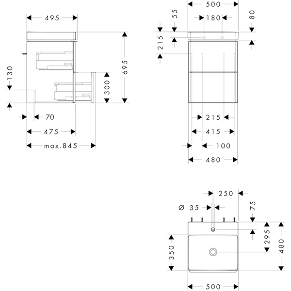• platsbesparande vattenlås måste beställas separatKommod• antal lådor: 2 lådor