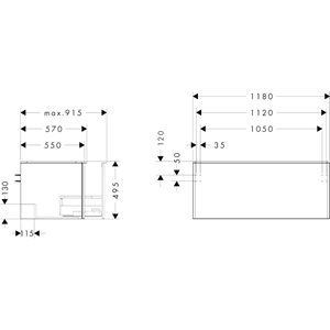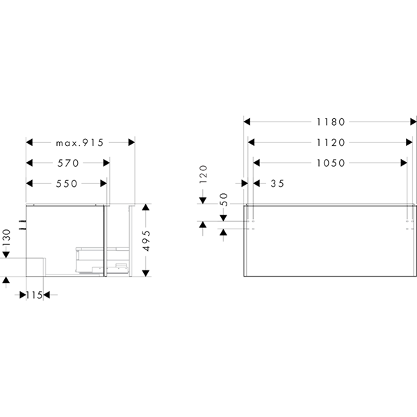 Xelu Q Kommod mörk valnöt 1180/550 med 1 låda bänkskiva med utskärning i mitten Mattsvart