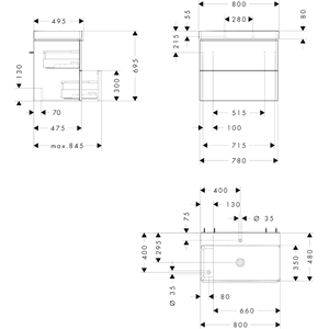 • platsbesparande vattenlås måste beställas separatKommod• antal lådor: 2 lådor