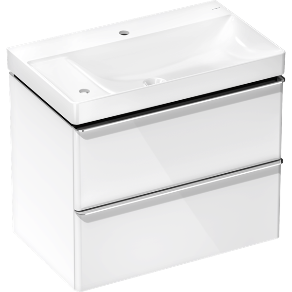 Xelu Q Kommod vit högglans 780/475 med 2 lådor med tvättställ, hylla till vänste