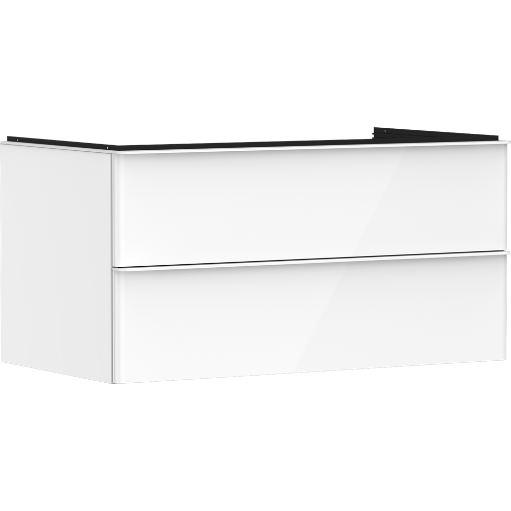 Xelu Q Kommod vit högglans 980/550 2 lådor för bänkskiva utskärning center Mattvit