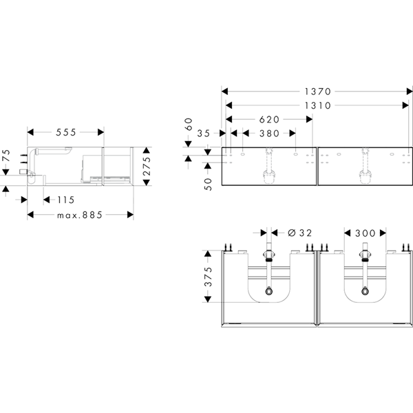 • tvättfat/tvättställ med slipad undersida och bänkskiva måste beställas separat