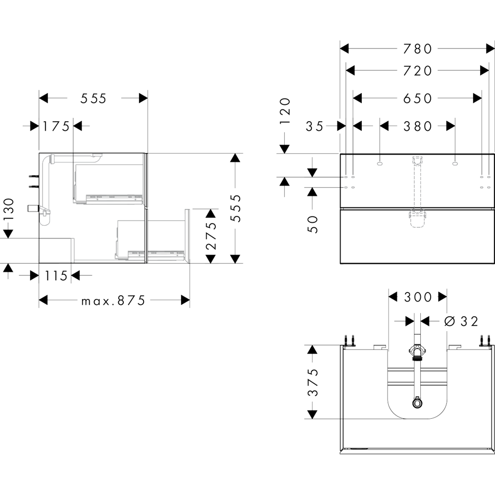 • tvättfat/tvättställ med slipad undersida och bänkskiva måste beställas separat